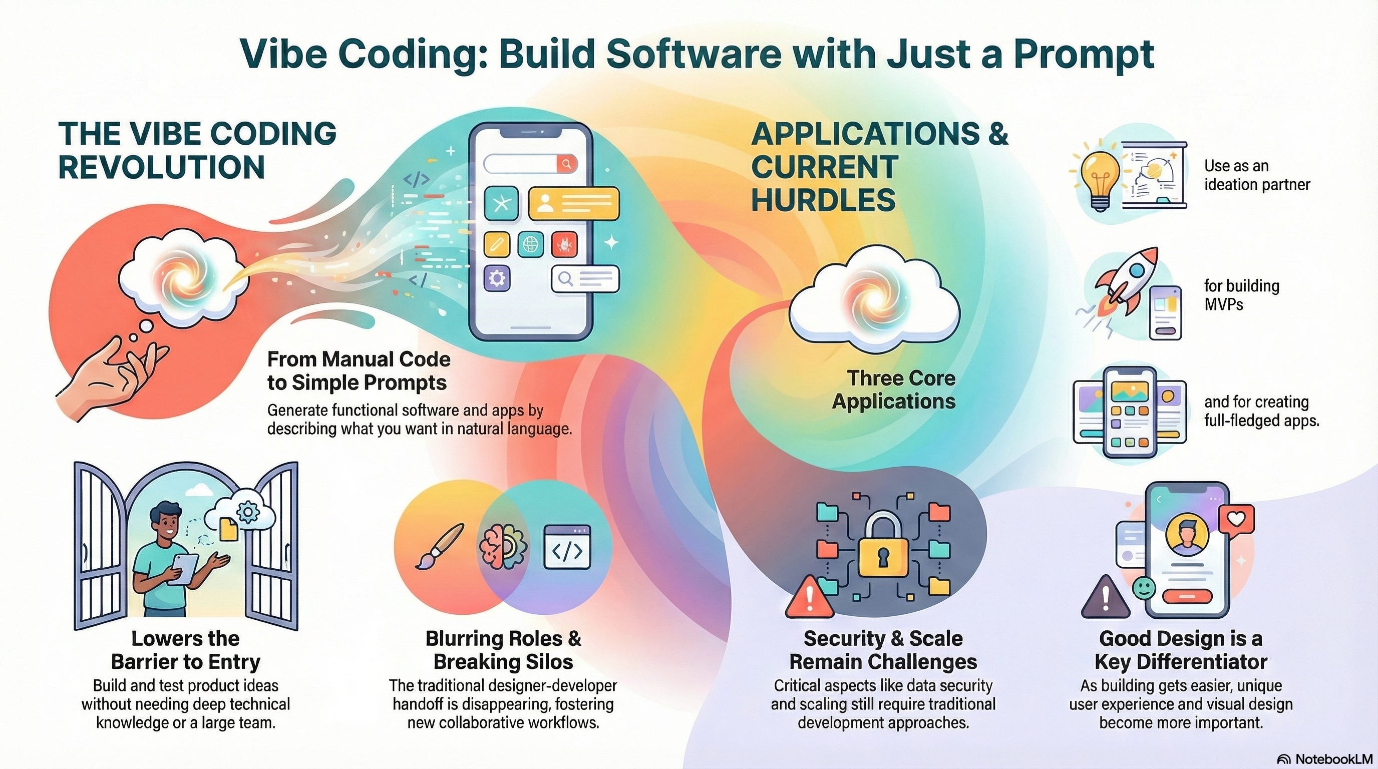 4. Enhanced Collaboration: Although the overlapping roles may initially cause cultural conflicts in big teams, vibe coding is taking out silos and fostering better collaboration by helping individuals understand each other’s roles more effectively. This allows designers, for example, to approach developers or product managers with a functional prototype to refine the product and make it production-ready.