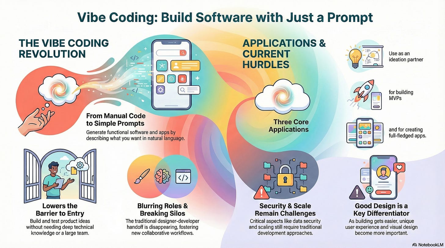 Vibe coding refers to the capability of dropping a text prompt into an agent and having that agent generate an entire application or software for you. Historically, building a small prototype, MVP (Minimum Viable Product), or full product involved manually writing code, which was a very time-consuming process.